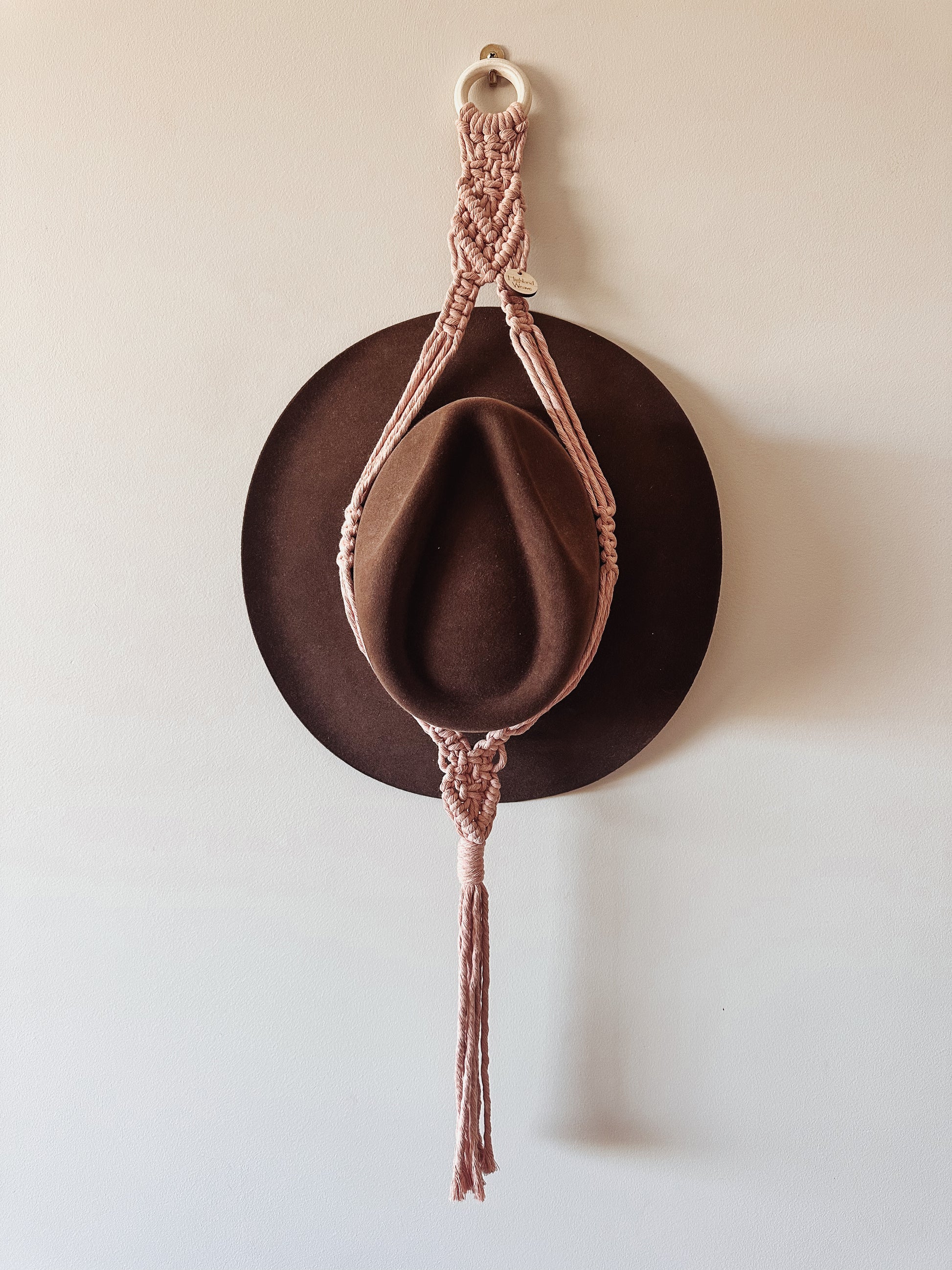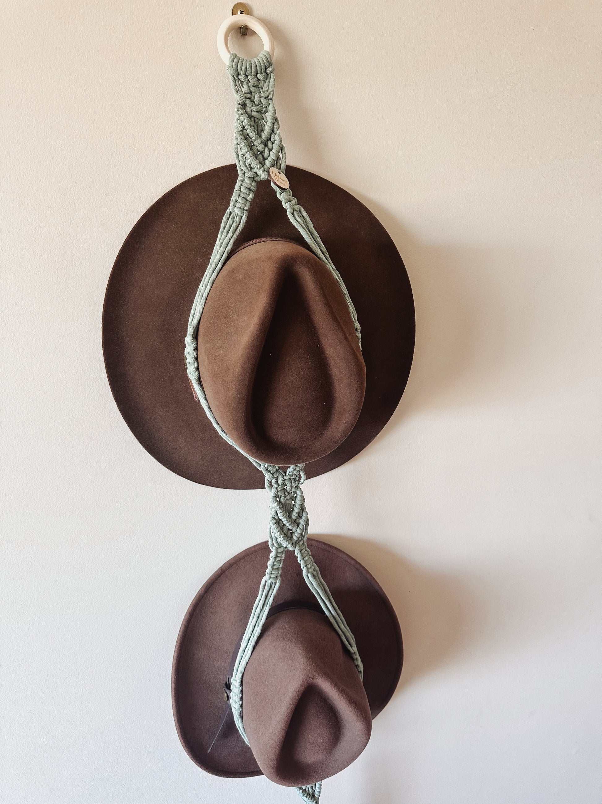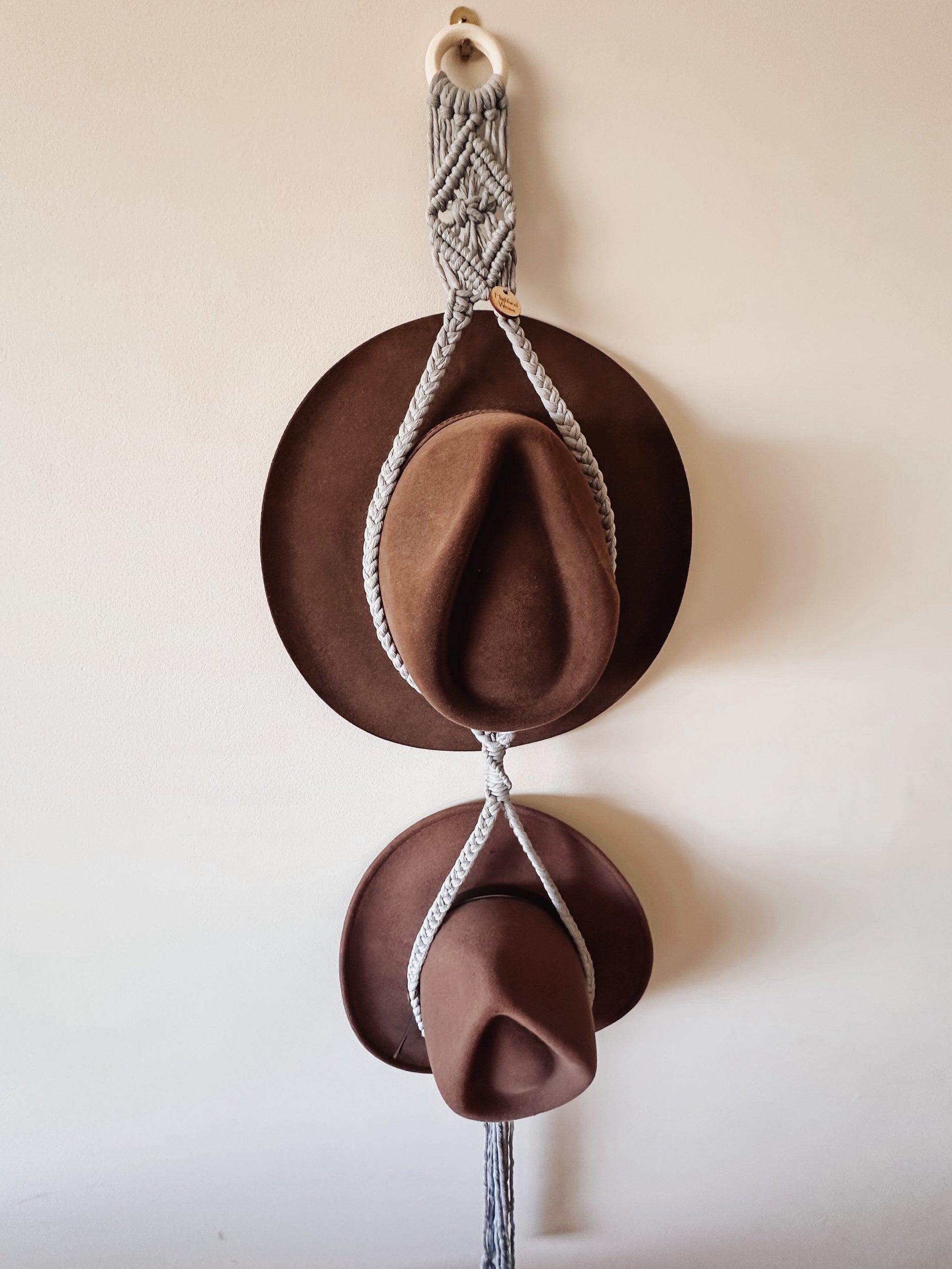 Hat holders are the perfect solution for getting your hats off the floor and on display in style. Available in single, doubles or triples. Choose natural for the boho look or select a colour to match your decor or hats.